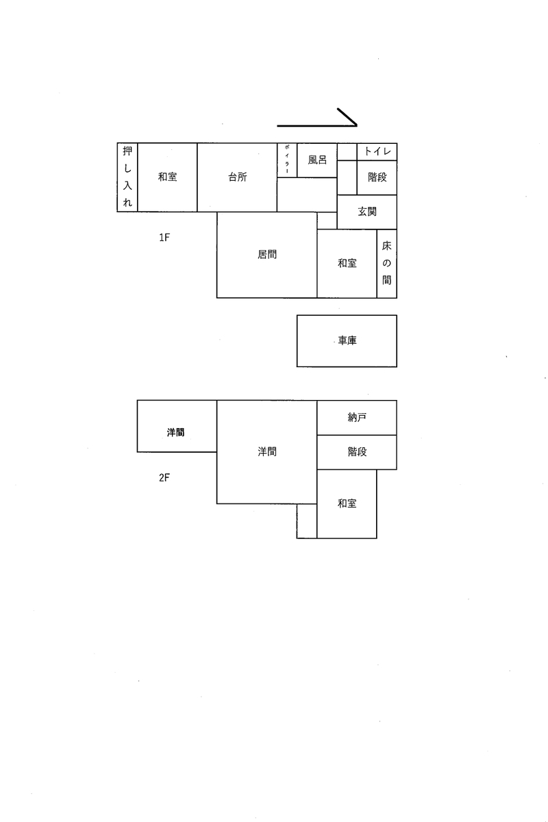 | 間取り | 1階:☑居間(8)畳 ☑台所 ☑風呂 ☑トイレ ☑和室(6)畳、(6)畳 2階:☑洋室(8)畳、(6)畳 ☑和室(6)畳 ☑その他(納戸) | ||||||