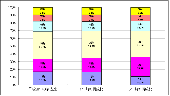 (注)平成18年に8級制から6級制に変更している。(旧給料表の1級及び2級並びに4級及び5級をそれぞれ統合)