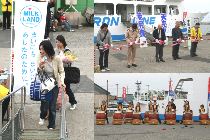 オロロン太鼓の勇壮な演奏も披露され、天売・焼尻へと向かう観光客に出港前の歓迎のプレゼントでした。