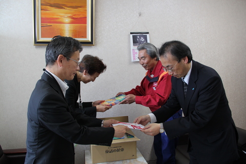 澤井石油商事株式会社(本社:留萌)から地域貢献活動として子どもたちにたくさん本を読んでもらおうと、5万円相当分の図書券と童話作品集「童話の花束」100冊の寄贈を受けました。澤井常務取締役と羽幌営業所の中佐所長が教育長室を訪れ、山口教育長へ目録と絵本を手渡しました。山口教育長は「図書室の利用も減少しているため、図書の充実に活用させていただきます」とお礼の言葉を述べました。