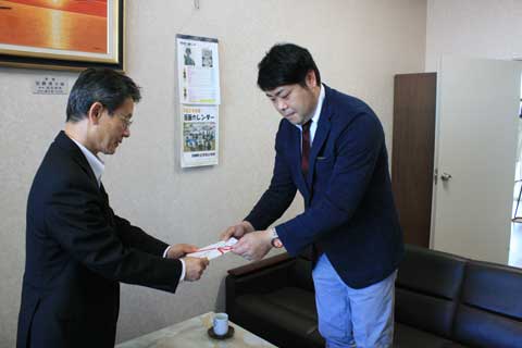 国道区画線設置工事を行っている株式会社保工北海道(本社:札幌市)が地域貢献活動の一環として、18日、サンセットビーチの駐車場の白線引きなどを実施されました。この活動に対しまして、29日、町長室において駒井町長から同社へ感謝状を贈呈しました。ご厚意に感謝します。ありがとうございました。