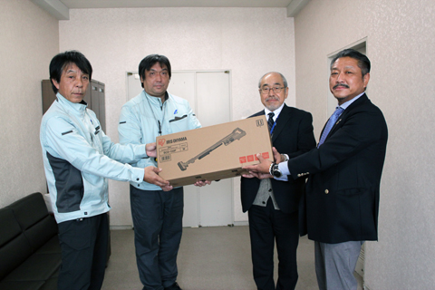 萌州建設(株)が町内小中学校へ寄贈品(2023年10月24日)