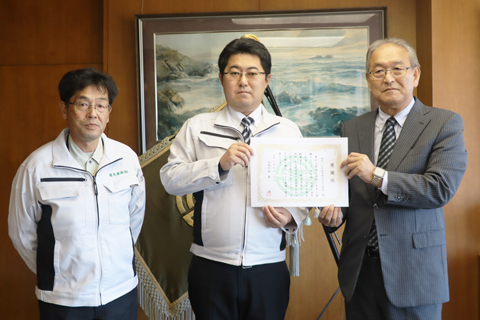 6日、塩見・山高経常建設共同企業体が地域貢献事業の一つとして築別3線橋など8個所の橋梁清掃を実施しました。30日には役場応接室で森町長から同社に感謝状を贈呈しました。ご厚意に感謝します。ありがとうございました。