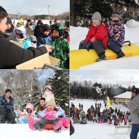 26日、町民スキー場「びゅー」まつりが開催されました。雪不足により開催が危ぶまれておりましたが無事に行われ、約350名がスキー場に訪れました。この日はリフト無料運行のほか、バナナボート、豚汁の無料配布、抽選会、餅まきなどが行われ、会場は大いに盛り上がりました。