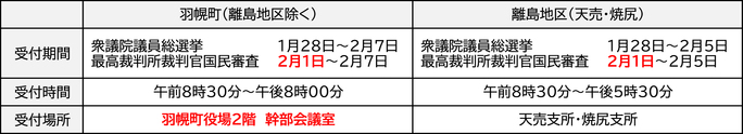 ※離島地区にお住まいの方が羽幌町役場2階 幹部会議室で期日前投票を行えるのは2月5日までです