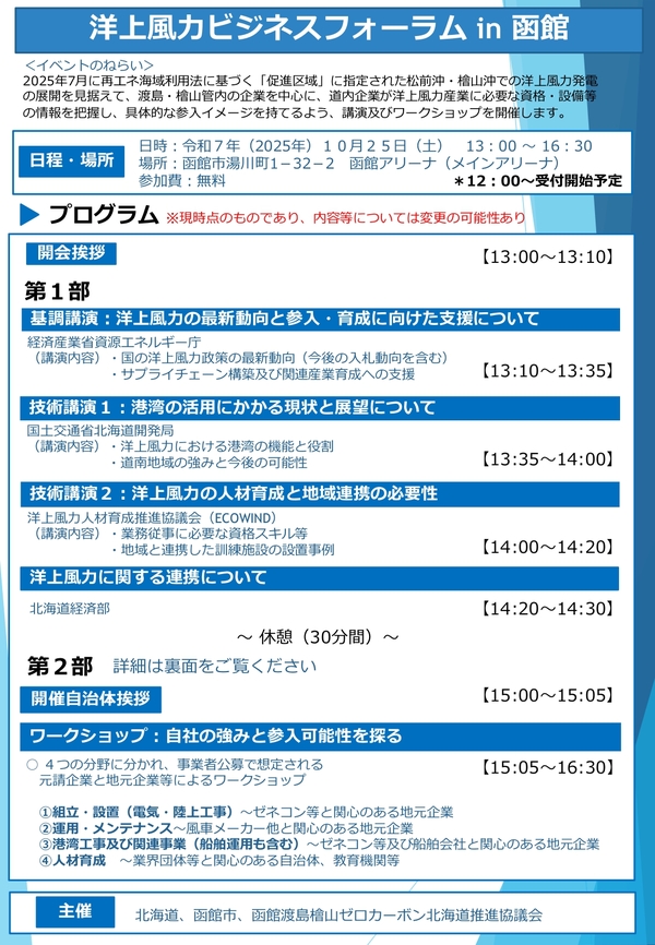 「洋上風力ビジネスフォーラムin函館」開催のお知らせ(事業者向け)