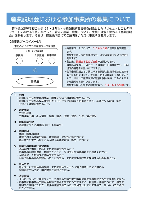 「じもと×しごと発見フェア」における産業説明会の参加事業者募集のお知らせ(事業者向け)