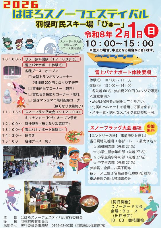 「2026はぼろスノーフェスティバル」を令和8年2月1日(日)に開催いたします。
