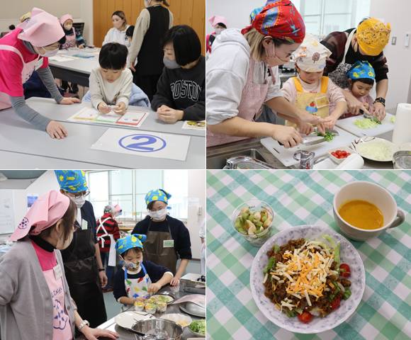11月30日、すこやか健康センターで羽幌町食生活改善協議会主催の「おやこの食育料理教室」が行われました。はじめに食育に関するゲームが行われた後、タコライス、かぼちゃポタージュ、フルーツヨーグルトパフェづくりに挑戦。子どもたちは慣れない作業に悪戦苦闘しながらも、お父さんやお母さんと協力して無事に料理が完成。完成後は出来上がった料理を全員でおいしくいただきました。