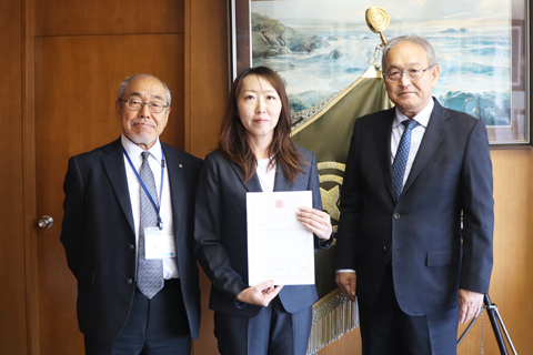 1日、羽幌町教育委員会委員に西田千里さんが任命され、森町長から辞令書が交付されました。