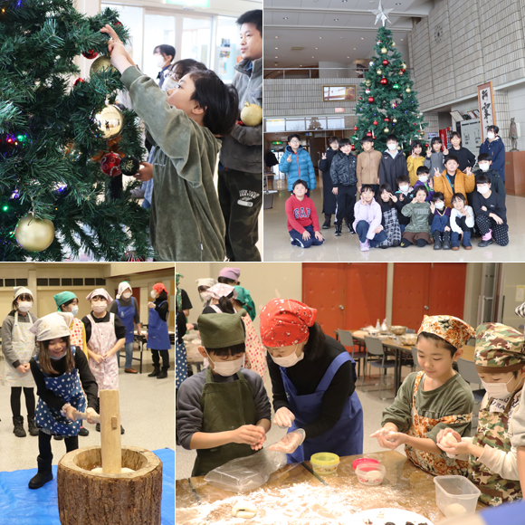 羽幌町子ども自然教室でクリスマスツリー飾りと餅つき体験