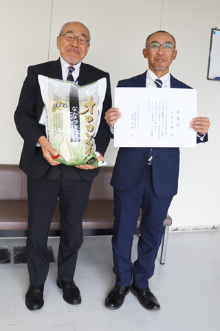 献穀米ななつぼしを寄贈いただきました(2025年10月30日)