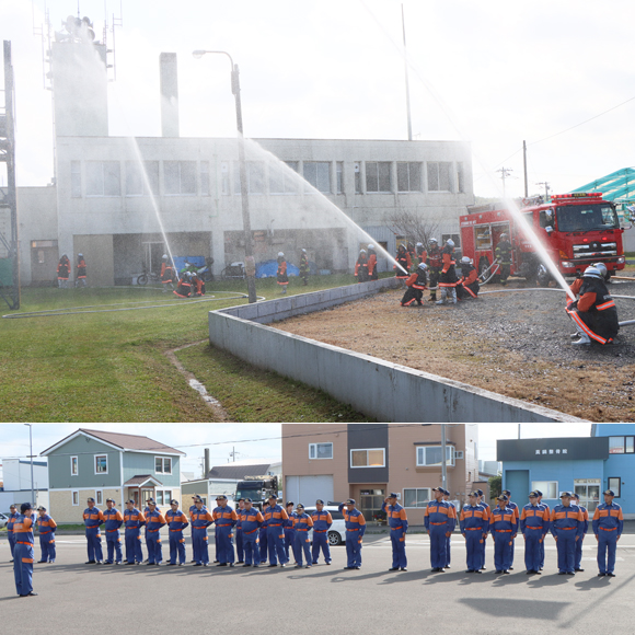 5日、北留萌消防組合消防署前で羽幌消防団秋季消防演習が行われました。消防団員招集のサイレン吹鳴後、団員が迅速に消防署庁舎前へ集合・整列。続いて、消防署前庭および庁舎裏の訓練塔で火災防ぎょ訓練を実施し、一斉放水も行われました。本番さながらの緊張感に包まれつつ、無事に訓練を終了しました。(写真は北留萌消防組合消防署より提供)
