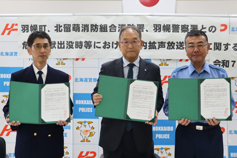 10月31日、住民の安全確保と迅速な情報伝達のため、羽幌町、北留萌消防組合消防署、羽幌警察署の三者は、「危険鳥獣出没時等における町内拡声放送使用に関する協定」を締結しました。この協定は、有害鳥獣の出没、緊急狩猟の実施、不発弾の発見など、人命にかかわる危険な事案が発生した際に、関係機関が町内拡声放送の使用について迅速かつ円滑な連携のもと協力し、住民への避難誘導や注意喚起を行うことを定めています。